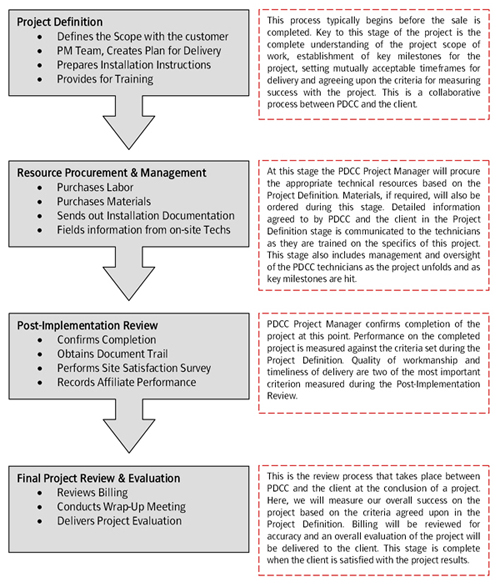 Before any project is undertaken by PDCC, an experienced Project Manager with the appropriate technical expertise for that specific job is assigned. The Project Manager will maintain ownership of the project for its entire life cycle.